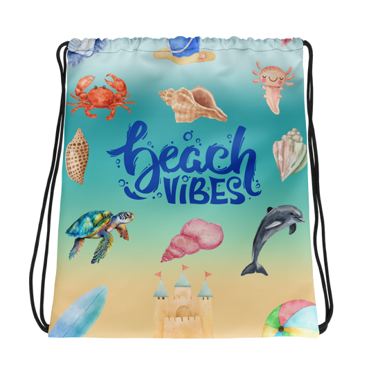 Beach vibes Drawstring bag, gift for him, gift for her, birthday gift, beach drawstring bag, beach memories