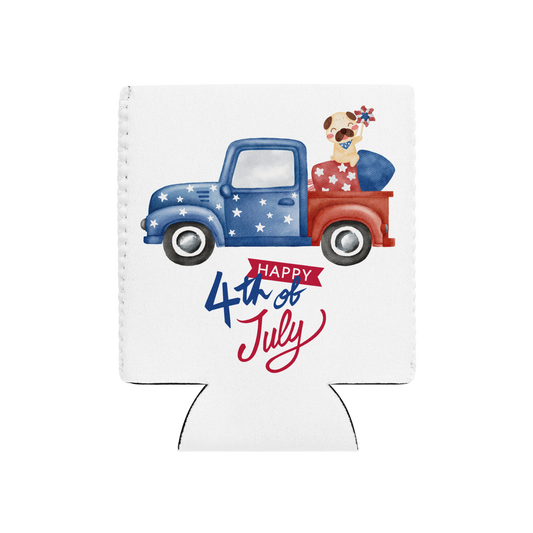 Fourth of July can cooler, Patriotic can cooler, gift for him, birthday gift, Independence Day, fireworks, patriotic red truck, USA, America