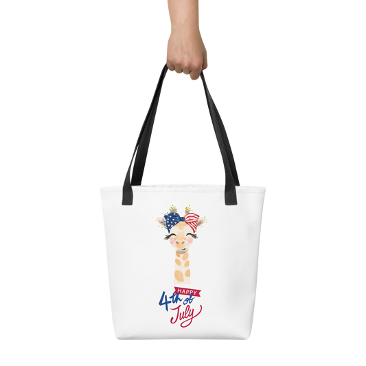 Fourth of July Tote bag, Patriotic tote, gift for her, birthday gift, Independence Day, fireworks, patriotic giraffe, USA