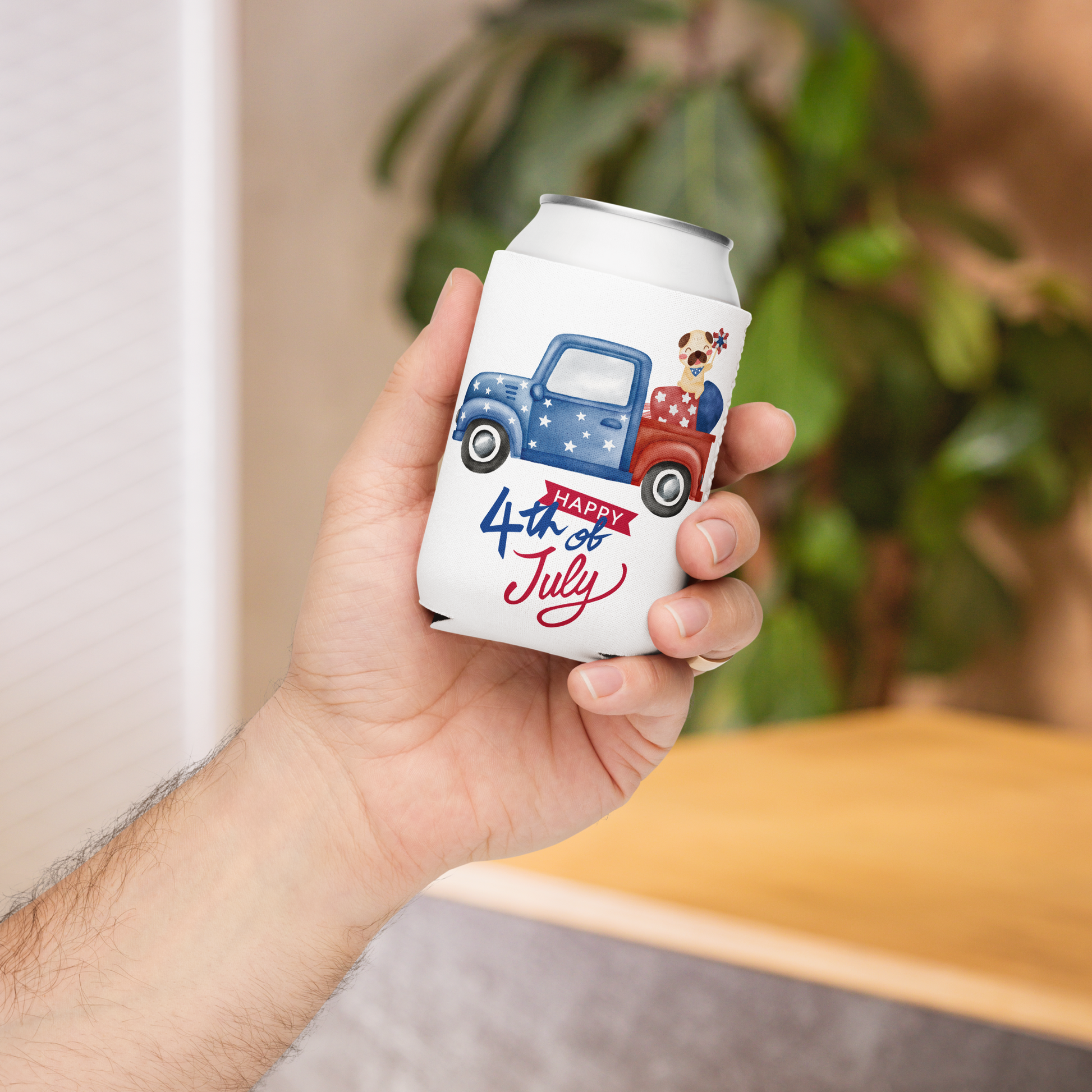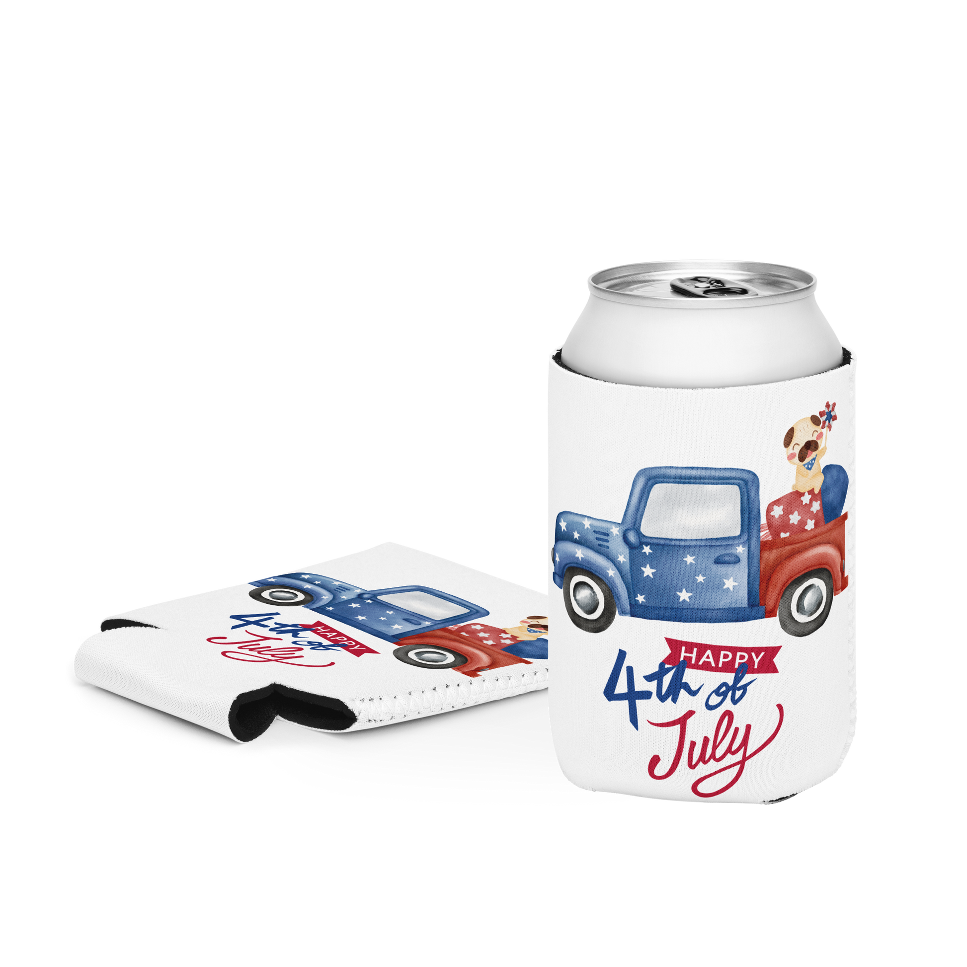 Fourth of July can cooler, Patriotic can cooler, gift for him, birthday gift, Independence Day, fireworks, patriotic red truck, USA, America
