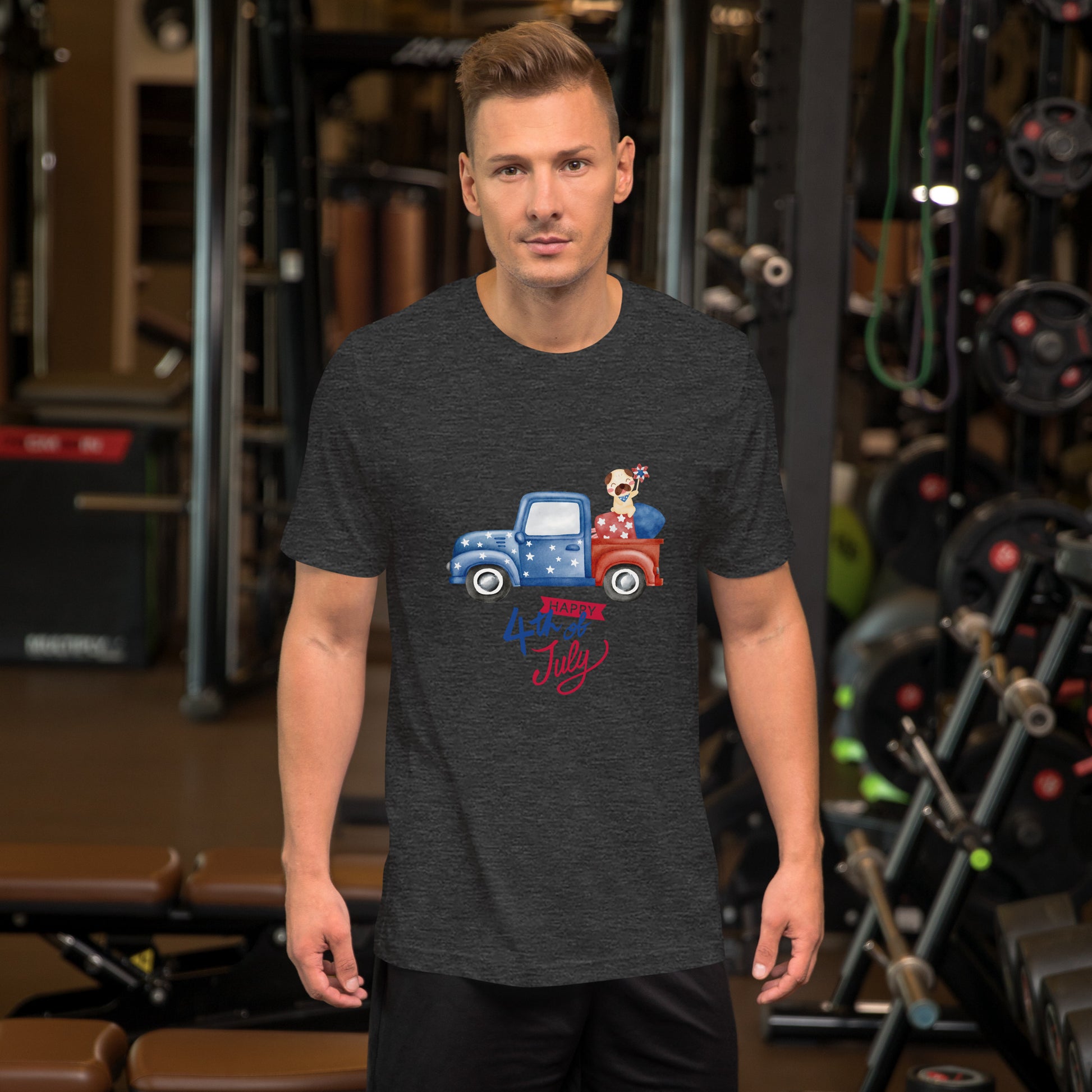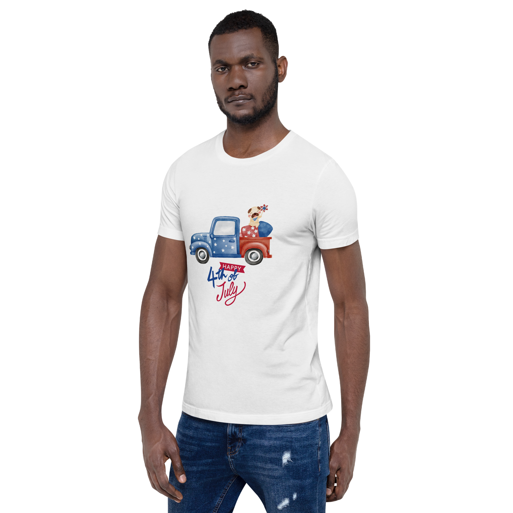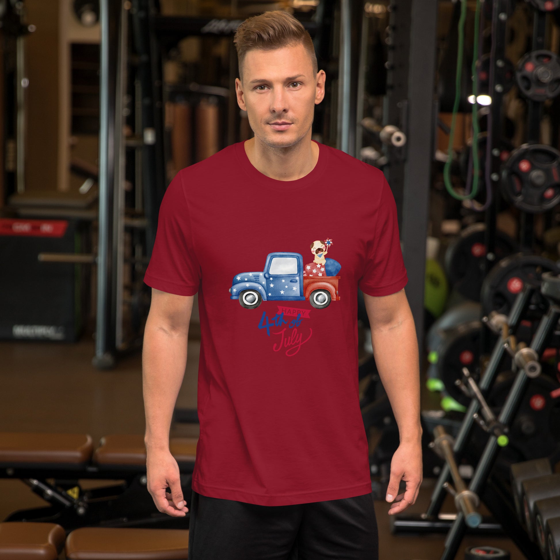 Fourth of July Unisex t-shirt, Patriotic t-shirt, gift for him, birthday gift, Independence Day, fireworks, patriotic red truck, USA shirt